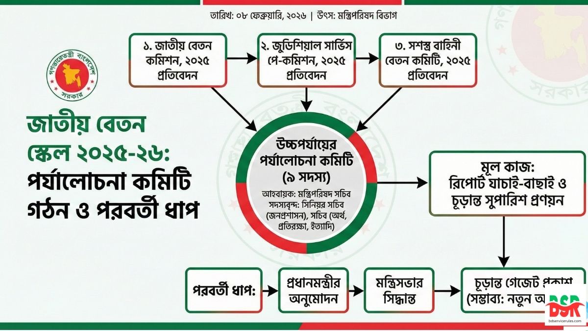 জাতীয় বেতন স্কেল ২০২৫-২৬ এর পর্যালোচনা কমিটি গঠন সরকারি চাকরিজীবীদের জন্য একটি ইতিবাচক এবং বড় অগ্রগতি। এটি নির্দেশ করে যে সরকার নতুন বেতন কাঠামো বাস্তবায়নের পথে সক্রিয়ভাবে কাজ করছে। পরবর্তী আপডেটগুলোর জন্য আমাদের সাথেই থাকুন।